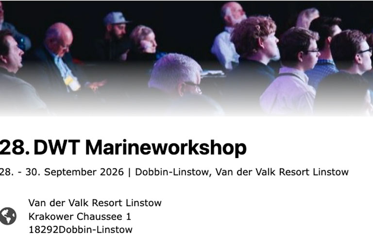 The 28th DWT Marine Workshop will take place from September 28-30, 2026, as usual at the Van der Valk Resort in Linstow.